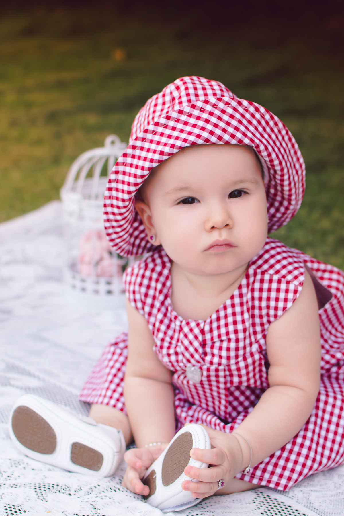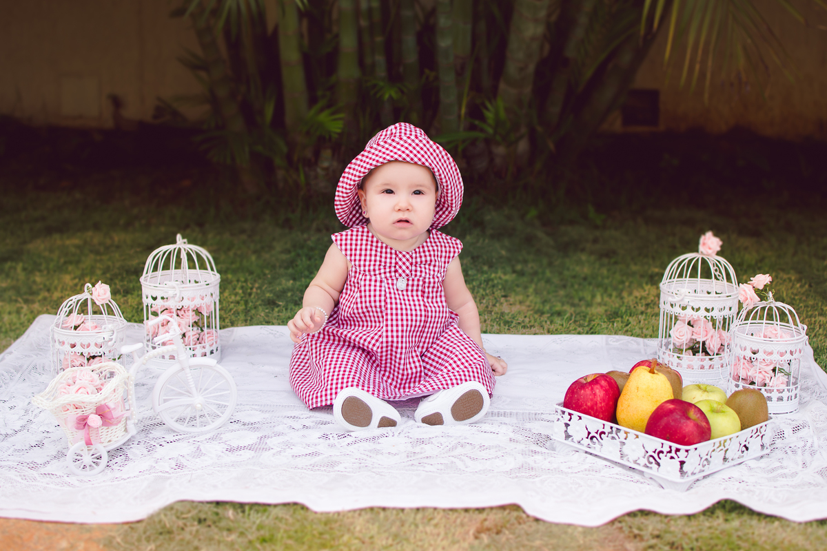 Que ensaio mais encantador e especial foi esse dos 7 meses da Maria Rita! Em um cenário singelo ao ar livre, Maria Rita viveu um verdadeiro piquenique de sonhos, rodeada de delicadezas, frutas coloridas, cestinhas encantadas e passarinhos trazendo ainda mais poesia ao momento. Com seu vestido xadrez vermelho e branco combinando com o chapéu, ela explorou, sorriu e, com seu jeitinho curioso, mostrou toda a doçura dessa fase linda dos 7 meses. Cada detalhe desse ensaio foi pensado para transmitir leveza, naturalidade e celebrar o crescimento cheio de alegria dessa pequena!