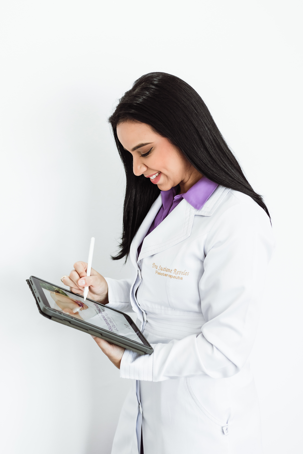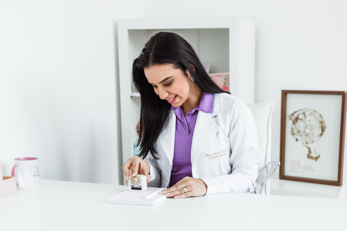 As fotos foram realizadas em seu ambiente de trabalho, refletindo a atmosfera tranquila e profissional que ela proporciona. Cada imagem foi pensada para transmitir a paixão de Suzi pelo que faz, além de mostrar a importância da fisioterapia pélvica funcional na saúde da mulher.